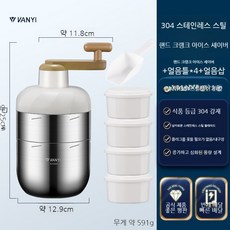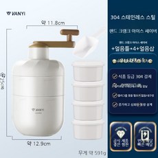 빙판 가정용 작은 스무디 기계 수동 축사 우박 제빙기 핸드 크랭크 아이스 연속 얼음 분쇄기, 304스틸 화이트+삽+틀4+ 상자 380ML