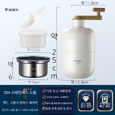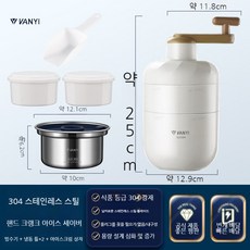 빙판 가정용 작은 스무디 기계 수동 축사 우박 제빙기 핸드 크랭크 아이스 연속 얼음 분쇄기, 304스틸 화이트+삽+틀+ 상자 380ML